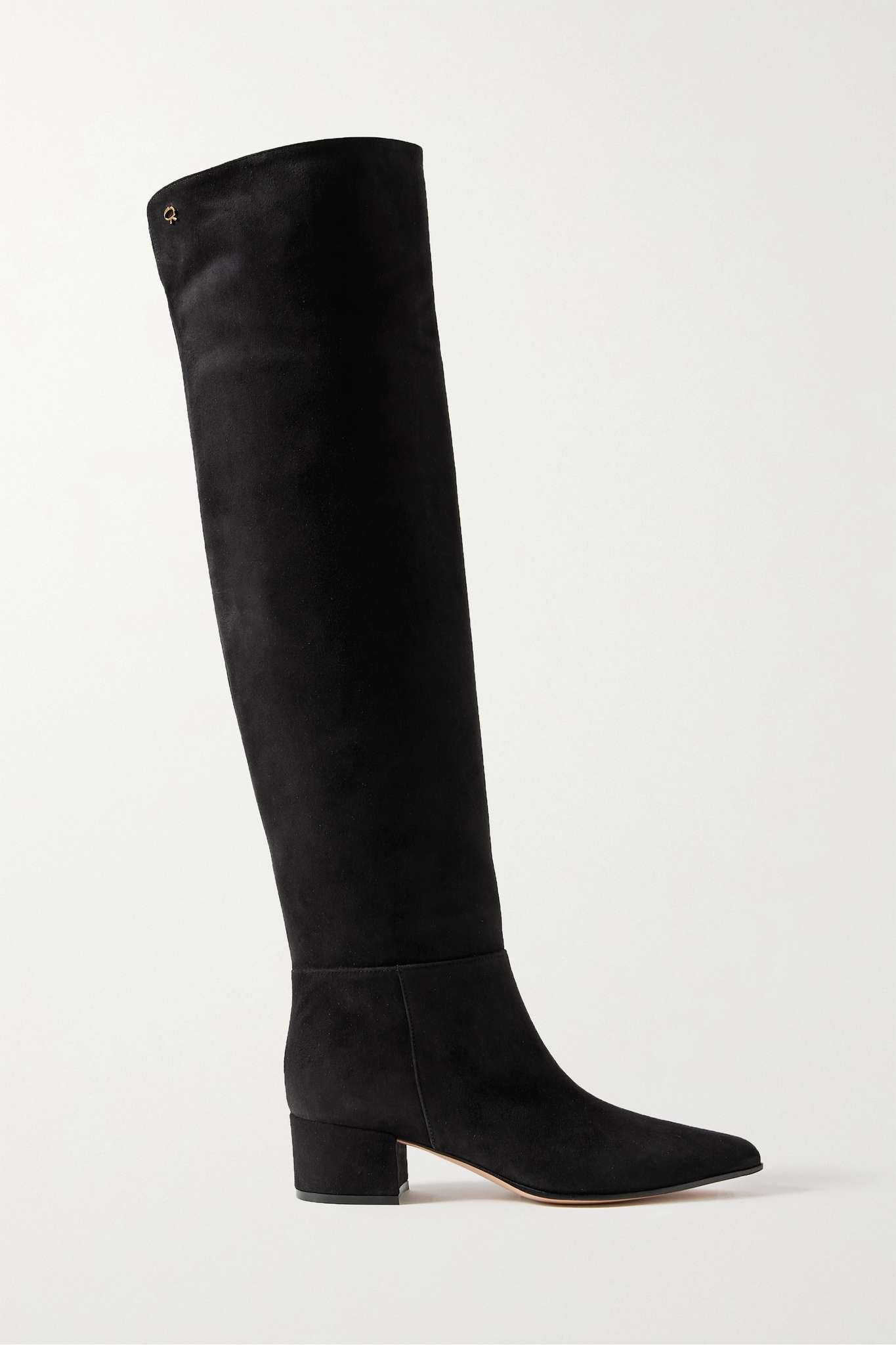 EDITORS'NOTES So much thought goes into the creation of Gianvito Rossi's shoes - even the soles of the designer's heels are curved for optimal balance. Taking roughly 60 steps to complete, these 'Camoscio' boots have been made in Italy from soft suede and hit over the knees. They're embellished with the label's signature 'Ribbon'. SIZE & FIT - Fits true to size, take your normal size - Italian sizing DETAILS & CARE - Heel measures approximately 45mm/ 2 inches - Black suede (Goat) - Pull on