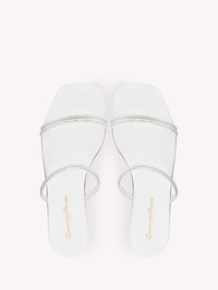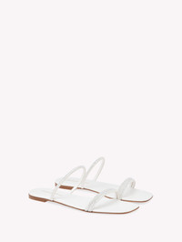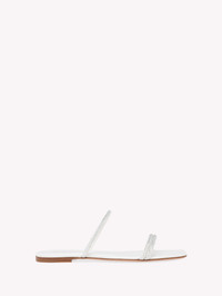 Elegant and versatile, Cannes 05 is a flat sandal with a squared toe and two 6mm wide straps: each strap is embellished with tiny precious crystals. Handmade in Italy. - Composition: 100% SUEDE - Heel height: 5 - Model Code: G16120.05CUO Item ID: G16120.05CUO.XCNBIBI