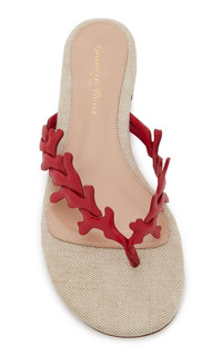 Son of Sergio, Gianvito Rossi continues the family legacy with his beautiful collection of glamorous footwear. Crafted to obsessive perfection, his shoes stem from the highest quality materials for luxurious comfort and longevity. Handcrafted in Italy, these sandals feature a leather strap inspired by coral. The padded canvas sole makes them endlessly comfortable. PRODUCT DETAILS - Slip on - Composition: 100% lamb leather - Designer color: Tabasco - Made in Italy