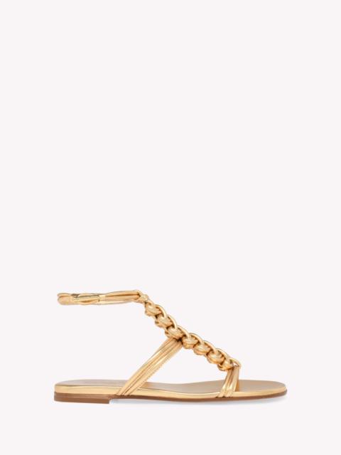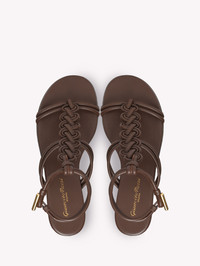 Crafted from soft leather, Capua is a round toe flat gladiator sandal with a braided T-bar motif and a 5mm stack heel. The tonal elastic ankle strap is finished with a logo-embossed metallic fastening. Handmade in Italy. - Composition: 100% NAPPA - Heel Height: 0.2 inches / 5 mm - Model Code: G32424.05CUO Item ID: G32424.05CUO.NAPBROW