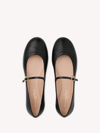 Crafted from precious leather, Carla is a flat ballerina style with a round toe and a rubber sole. The iconic Ribbon buckle, signature of the brand, enriches the front Mary Jane strap. A versatile staple reinterpreting ballet shoes’ proportions with a modern take: step after step, any woman can turn urban streets into her own stage. Handmade in Italy. - Composition: 100% NAPPA - Heel height: 0.2 inches / 5 mm - Model Code: G22223.05GOM Item ID: G22223.05GOM.NAPNERO