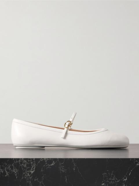 Carla leather-trimmed raffia Mary Jane ballet flats Neutral