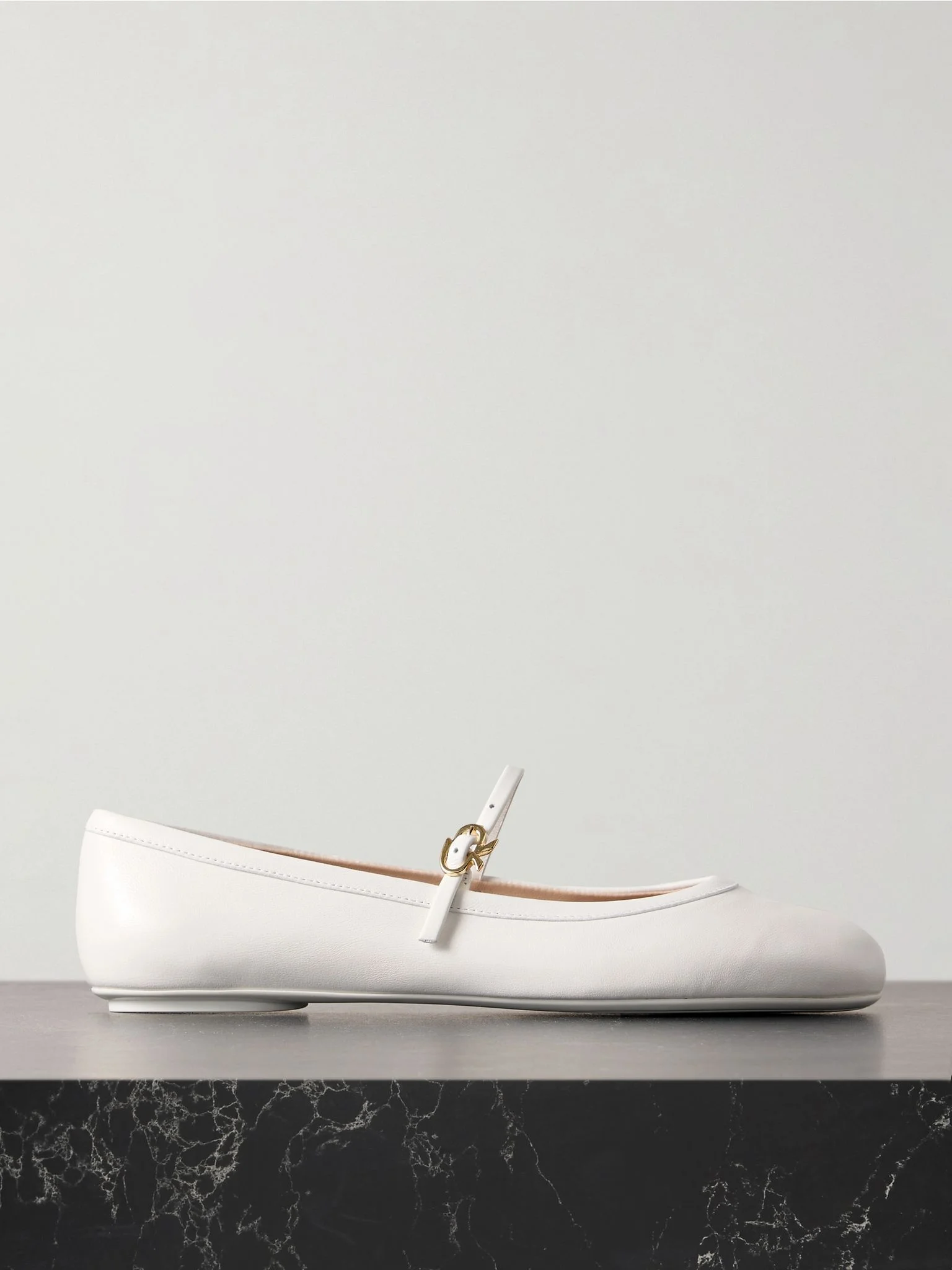 Comfortable and chic, ballet flats have been a welcomed returning trend for for the last few seasons. Gianvito Rossi's 'Carla' pair is made from leather that's beautifully soft. They secure with slim Mary Jane straps. Size & Fit - Fits true to size, take your normal size - Italian sizing Details & Care - Slight heel - White leather (Lamb) - Buckle-fastening strap