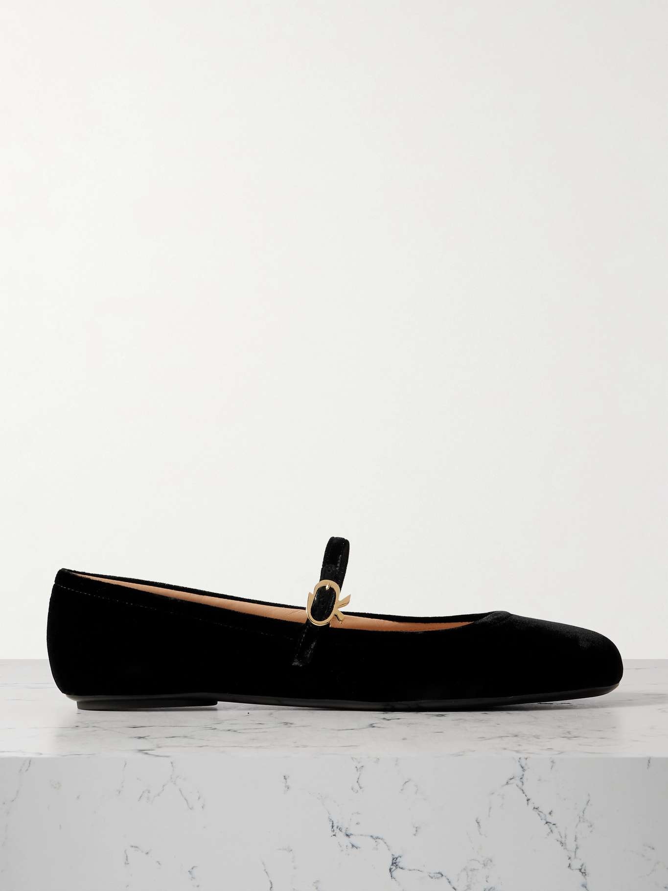 EDITORS'NOTES With just one glance at the gold-tone ribbon buckles, those in the know will be able to instantly recognize that these 'Carla' Mary Jane ballet flats are Gianvito Rossi's. Made from plush black velvet, they have rounded toes and slight heels. SIZE & FIT - Fits true to size, take your normal size - Italian sizing DETAILS & CARE - Slight heel - Black velvet - Buckle-fastening strap