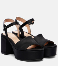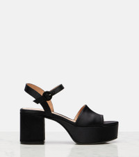 Crafted from materials of the highest quality, Gianvito Rossi’s designs are handmade using both traditional craftsmanship and innovative techniques. The Carol 35 platform sandals are made in Italy with silk satin. Product Details - Upper: satin, leather - Lining: leather - Sole: leather insole, leather and rubber sole - Toe shape: round open toe - Made in Italy - Includes: shoe box, dust bag - Designer color name: Black - Item color: black - Item number: P01063448 Size & Fit - Fits slightly large to size - we recommend trying a half size smaller - European sizes - 9cm-3.5" heel (size EU 38) - 5,5cm-2" platform (size EU 38)