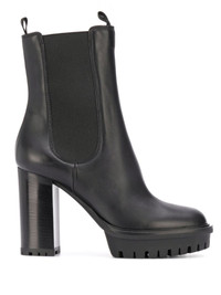 EDITORS'NOTES Gianvito Rossi's 'Chester' ankle boots are modeled on traditional Chelsea styles and set on elevated 70mm heels. They've been made in Italy from smooth black leather and have flexible elasticated panels and gripped soles for traction. Wear yours with cropped dresses or skirts. SIZE & FIT - Fits true to size, take your normal size - Italian sizing DETAILS & CARE - Heel measures approximately 70mm/ 3 inches - Black leather (Calf) - Pull on