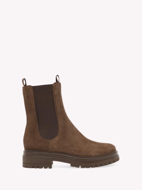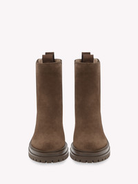 Crafted from supple suede, Chester is a round toe Chelsea bootie. The urban rubber sole measures 20mm at the back. The elastic sides help with the fit. Handmade in Italy. - Composition: 100% SUEDE - Heel Height: 0.8 inches / 20 mm - Model Code: G73462.20GOM Item ID: G73462.20GOM.SUEBROW