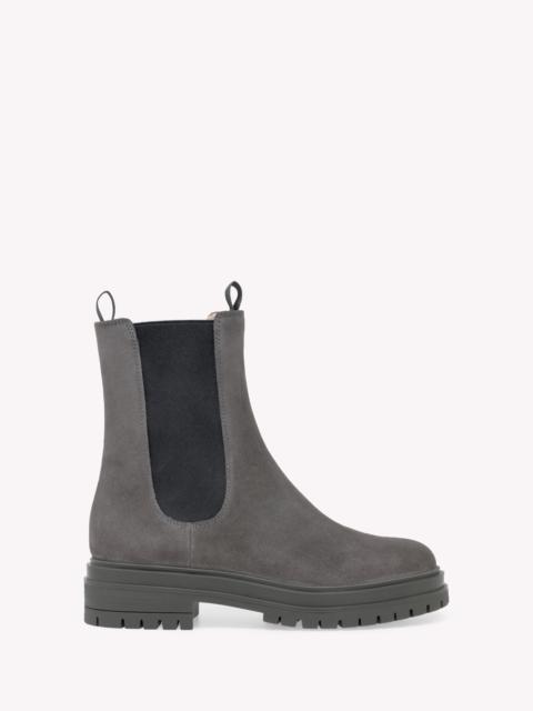 Crafted from supple suede, Chester is a round toe Chelsea fitted bootie. The tonal rubber lug sole measures approximately 25mm at the front and 40mm at the back. The elastic sides help with the fit. Handmade in Italy. - Composition: 100% SUEDE - Heel height: 0.8 inches / 20 mm - Model Code: G73462.20GOM Item ID: G73462.20GOM.SUEDKOL