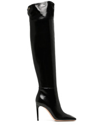 Christina Cuissard 95mm leather boots Highlights - Black - Leather - Gold-tone logo plaque - Square toe - Side zip fastening - Above-knee length - High stiletto heel - Leather sole Made in Italy Composition Outer: Leather 100% Lining: Leather 100% Sole: Leather 100% SIZE & FIT Measurement HEEL 3.93 in(10 cm) HEIGHT 21.65 in(55 cm)