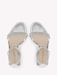 Crystal Leomi, a high-heeled open toe sandal adorned by a delicate woven braid embellished with crystals featuring an ankle tie strap that enwraps the foot in a compelling game for the eye. Hand-crafted in Italy from the finest materials this high heeled sandal is a seasonal must-have. - Composition: 60% NAPPA SILK + 40% SUEDE - Heel height: 105 - Model Code: G61678.15RIC Item ID: G61678.15RIC.BNSARAR
