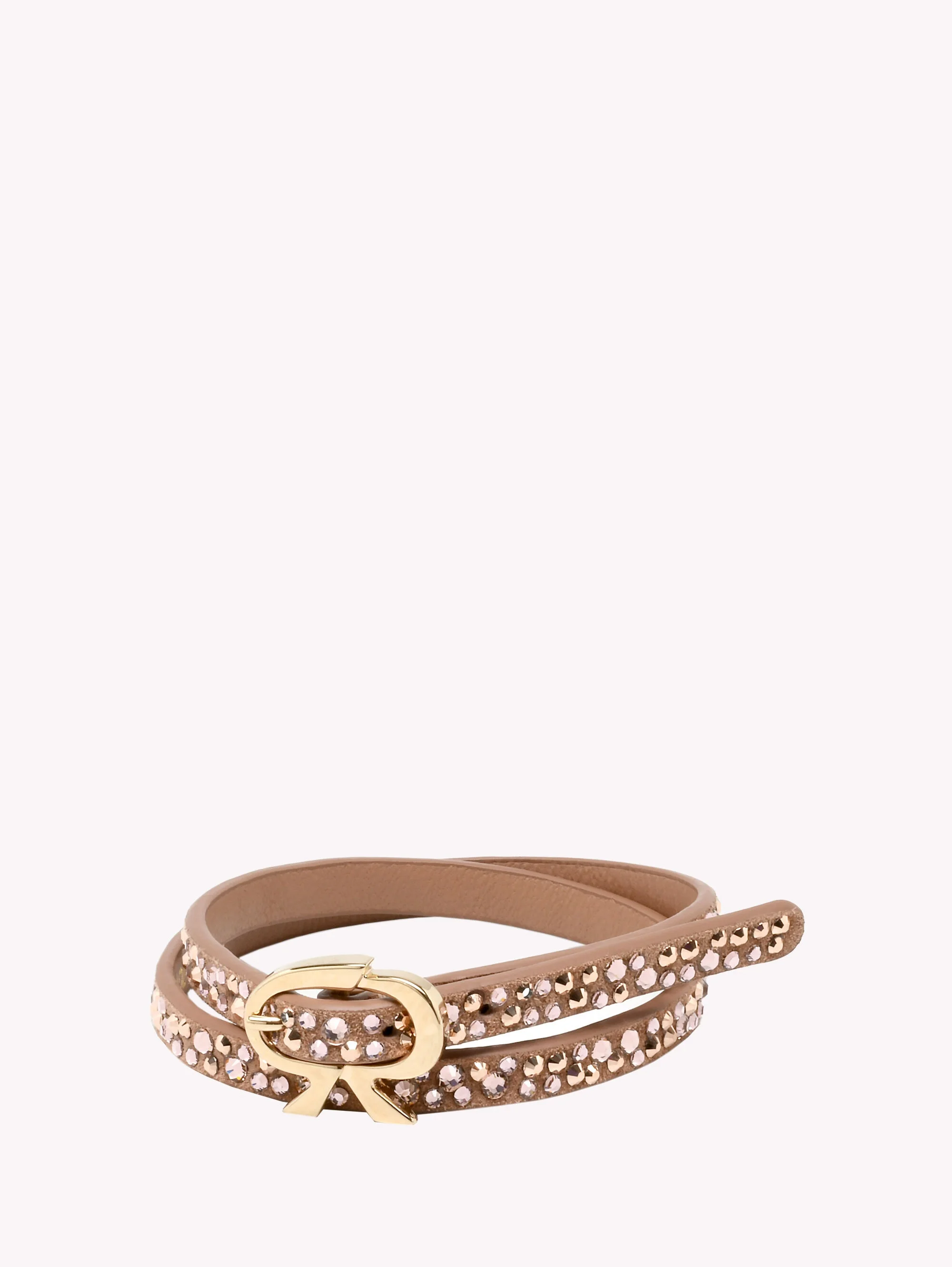 Crafted from suede and leather, Crystal Ribbon Loop is criss-cross bracelet with the signature Ribbon buckle. The design is embellished with 250 precious tonal crystals.The bracelet is one size only and has a total length of 39,5cm along with 5 holes to regulate the fit. Handmade in Italy. - Composition: 100% SUEDE - Model Code: QXX154.CRRIB Item ID: QXX154.CRRIB.MGCPROR_PZ
