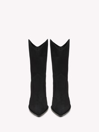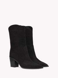 Crafted from soft suede, Denver is a bootie featuring a pointy toe and a 70mm block heel. The tonal stitching and rounded shape of the upper edge complete its quintessential design. Handmade in Italy. - Composition: 100% SUEDE - Heel height: 70 - Model Code: G73546.70CUO Item ID: G73546.70CUO.CASNERO