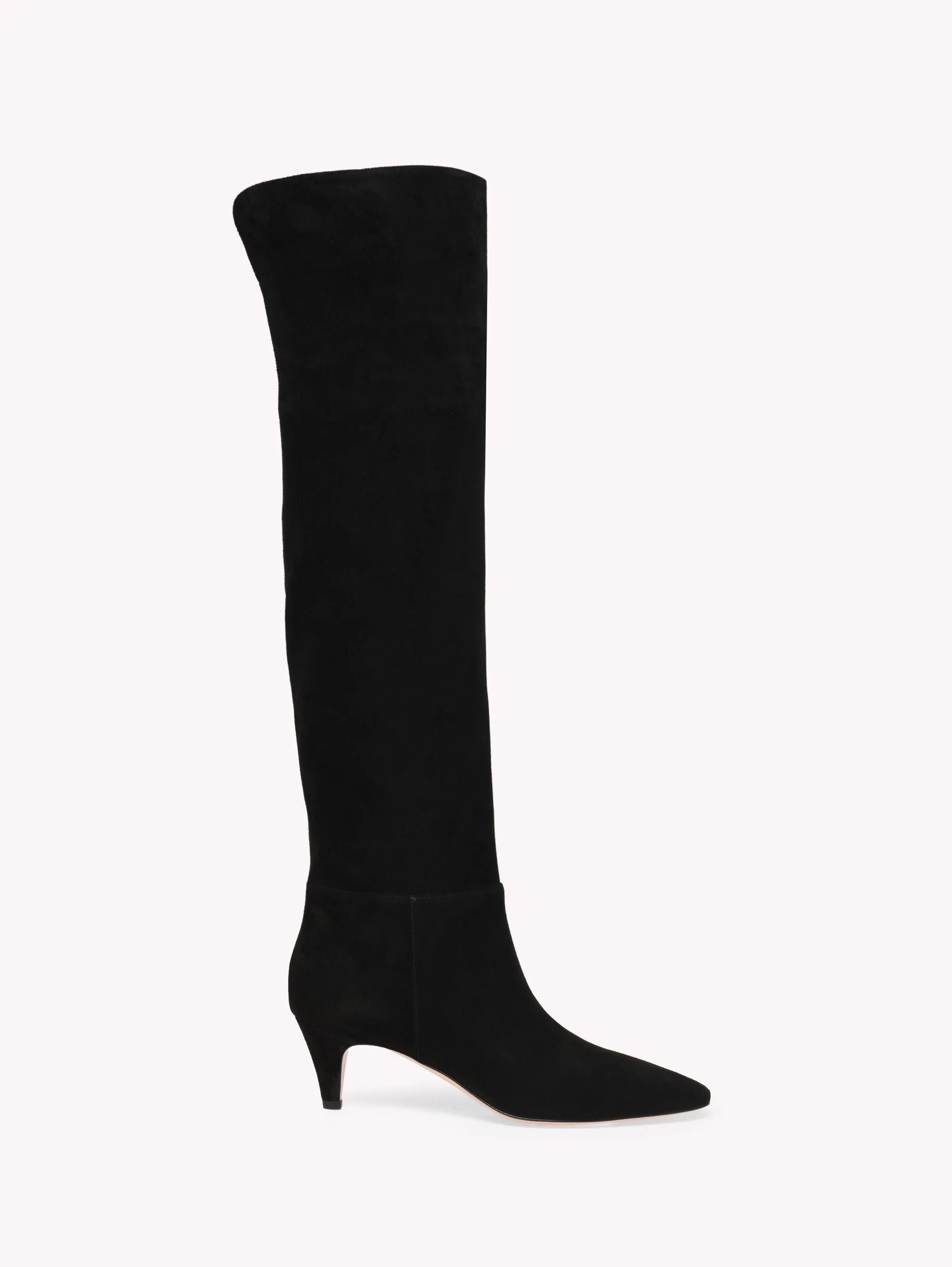Crafted from supple suede, Elise Boot 55 is pull-on over-the-knee style with an almond-shaped toe and a 55mm cone heel. The upper presents a slouchy silhouette. Handmade in Italy. - Composition: 100% SUEDE - Heel height: 2.2 inches / 55 mm - Model Code: G80138.55RIC Item ID: G80138.55RIC.C45NERO
