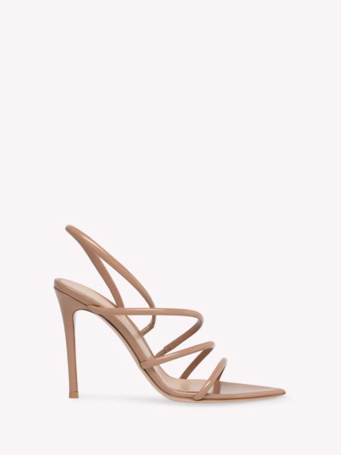 Crafted from Nuit, the Maison's distinctive leather with a glossy finish, Ettie is a pointed-toe multistrap sandal with a 105mm stiletto heel and an asymmetric leather strap motif. Handmade in Italy. - Composition: 100% NAPPA - Heel height: 4.1 inches / 105 mm - Model Code: G32441.15RIC Item ID: G32441.15RIC.NUIPRAL
