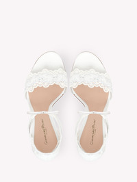 Crafted from leather, Evie Sandal is a round toe ankle tie style with a 105mm stiletto heel. The design presents a tonal floral lace embroidery. Handmade in Italy. - Composition: 100% NAPPA - Heel Height: 4.1 inches / 105 mm - Model Code: G61218.15RIC Item ID: G61218.15RIC.NAPBIAN