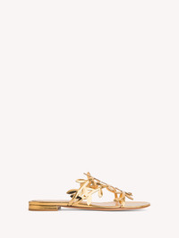 Crafted from mirror-effect leather, Flavia 05 is a round toe asymmetric flat slide with a 10mm low block heel. The upper presents a laser-cut leaf motif. Handmade in Italy. - Composition: 100% CALF - Heel Height: 0.2 inches / 5 mm - Model Code: G15680.05RIC Item ID: G15680.05RIC.METMEKO