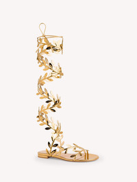 Crafted from mirror-effect leather, Flavia Gladiator is a round toe flat sandal with a 10mm block heel. The upper presents a laser-cut leaf motif that wraps around the leg and ties at the knee with matching metallic-effect leather laces. Handmade in Italy. If you wish to return a product, you can return it for free within 30 days of the reception of your order. Please return the items in the same condition in which they were received, including dustbag, box and protective stickers. Incomplete, damaged, worn or altered items cannot be accepted as stated in our Terms and Conditions . Standard shipping FREE (3-5 business days) Express shipping $60 (1-3 business days) Deliveries are made from Monday to Friday between 9:00 a.m. and 6:00 p.m. The time frame for delivery is calculated from the time your order is dispatched, not from the time your order was placed. Please check our Shipping page for further information. - Heel height: 0.2 inches / 5 mm - Model Code: G32463.05RIC Item ID: G32463.05RIC.MNSMEKM