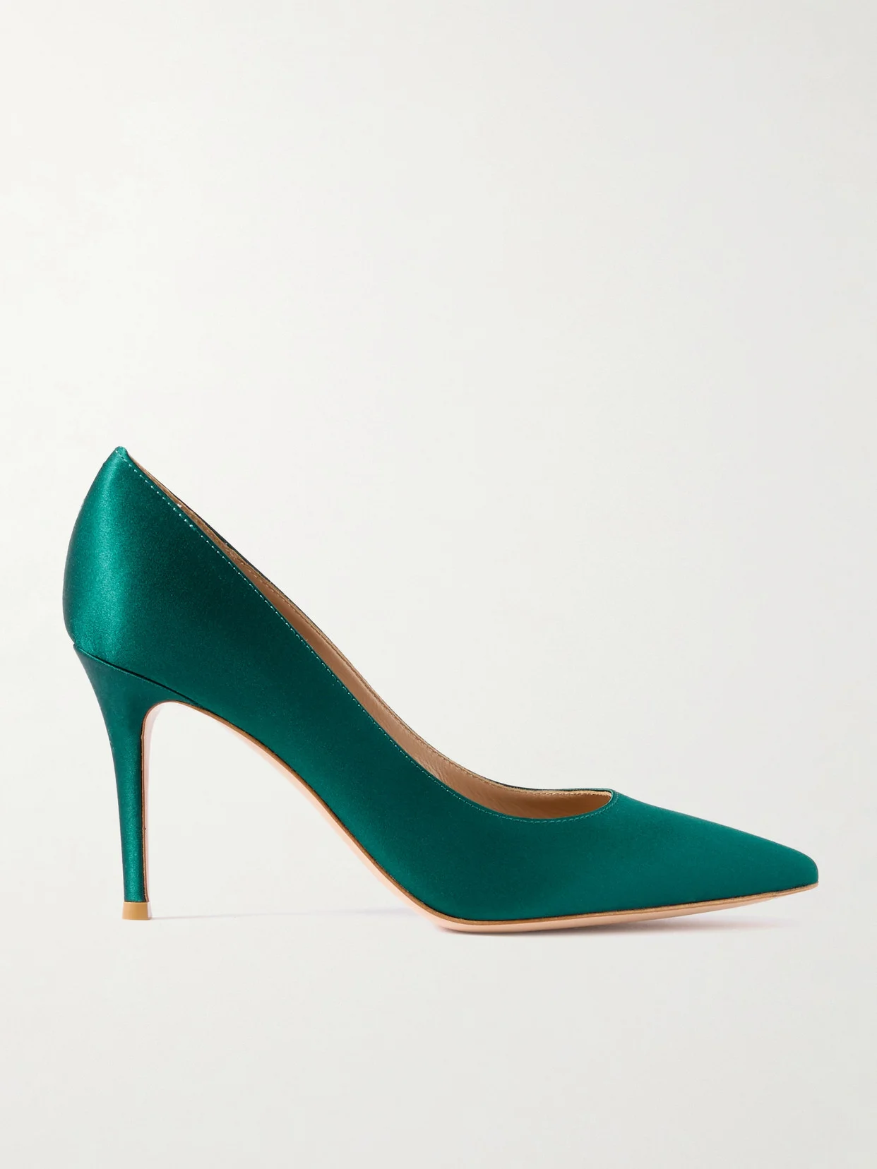 You know a shoe is iconic when it goes by one name, and Gianvito Rossi's 'Gianvito' pumps are a timeless example. Made in Italy from lustrous emerald satin, they have pointed toes, lightly cushioned insoles and sleek 85mm stiletto heels. Wear them with everything from dresses to tailoring.