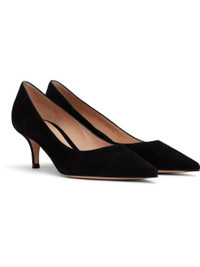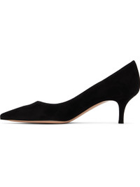 Handcrafted suede heels in black. · Pointed toe · Logo stamp at padded leather footbed · Covered kitten heel with rubber injection · Leather sole · Heel: H2" Supplier color: Black Upper: leather. Sole: leather, rubber. Made in Italy 251090F122014