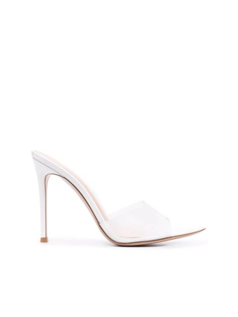 105mm Elle transparent sandals Gianvito Rossi plays with transparency in these Elle mules. With a 105mm stiletto heel, its vamp has a clear design in a black hue. Highlights - Black - Calf leather - Patent finish - Transparent design - Single toe strap - Pointed toe - Slip-on style - Branded leather footbed - 105mm high stiletto heel - This piece comes complete with a protective dust bag. Made in Italy Composition Leather 100% SIZE & FIT Measurement HEEL 4.52 in(11.5 cm)