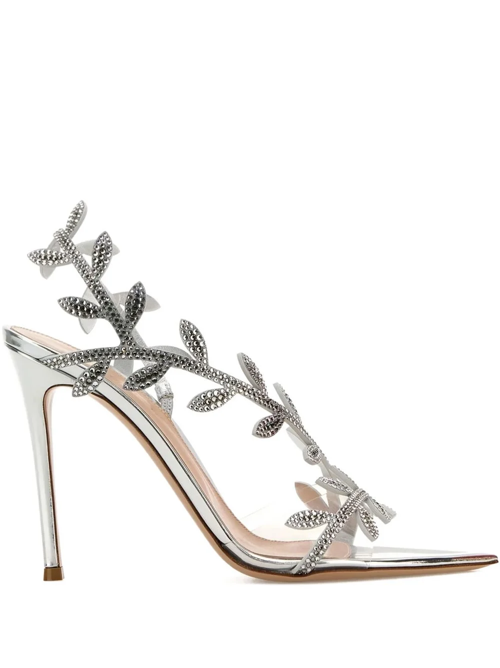 crystal-leaf leather sandals Highlights - Silver - Crystal embellishment - Leaf motif - Stiletto heel Made in Italy Composition Sole: Calf Leather 100%, Rubber 100% Outer: Leather 100% Lining: Leather 100%