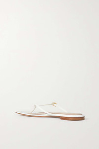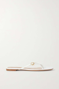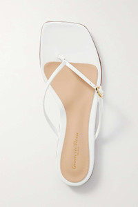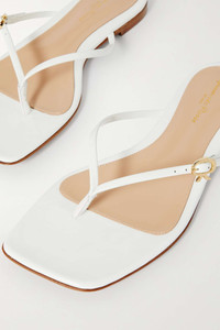 EDITORS'NOTES The minimal design of Gianvito Rossi's square-toe sandals ensures they go with nearly any outfit. Made from white glossed-leather, they have a signature ribbon-shaped buckle along the slim strap and rest on a slight wooden heel. SIZE & FIT - Fits true to size, take your normal size - Italian sizing DETAILS & CARE - Slight heel - White glossed-leather (Calf) - Buckle-fastening strap