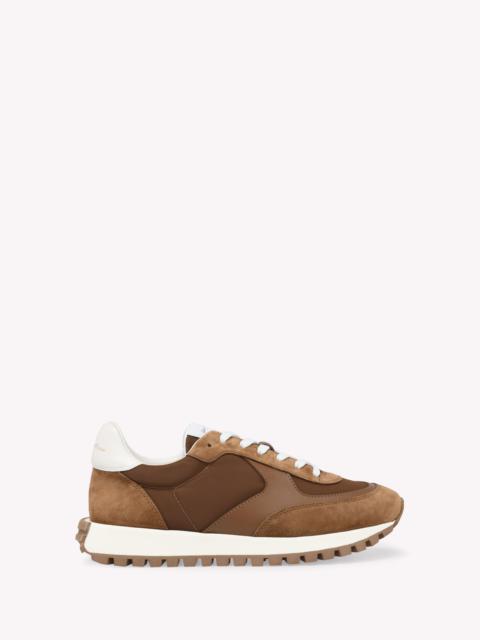 Set on a rubber lug sole, Gravel is the urban sneaker crafted from suede, leather and water-resistant nylon fabric. The front laces and the embossed logo on the back complete the design. Handmade in Italy. - Composition: 40%SUEDE+20%VITELLO+30%NAYCER+10%NAPPA - Heel Height: W1 - Model Code: S25460.W1OFS Item ID: S25460.W1OFS.SCYCUOF