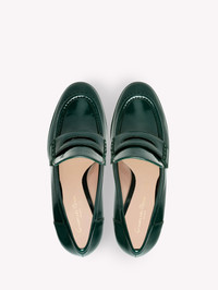Crafted from soft glossy leather, Hadden is a round toe penny bar moccasin with a 30mm platform and a 105mm chunky heel. The platform is completed with a rubber sole at the front. Handmade in Italy. - Composition: 100% NAPPA - Heel Height: 2.8 inches / 70 mm - Model Code: G25356.70RIC Item ID: G25356.70RIC.NUIMALA