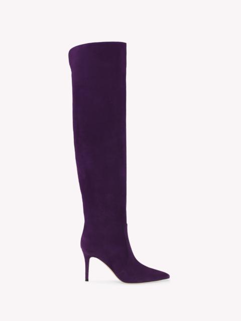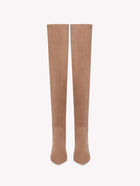 Crafted from supple suede, Hansen Cuissard is a pull-on over-the-knee boot with a pointed toe and an 85mm stiletto heel. Only the finest leather quality achieves a level of perfection and uniformity that is unparalleled in both touch and appearance. These over-the-knee boots enhance color nuances through the softness of the most exquisite suede. Handmade in Italy. - Composition: 100% SUEDE - Heel Height: 3.3 inches / 85 mm - Model Code: G80142.85RIC Item ID: G80142.85RIC.C45PRAL