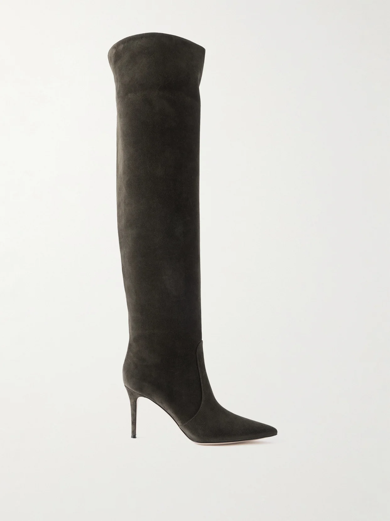 Gianvito Rossi's 'Hansen' boots have a simple, point-toe silhouette that'll ground so many outfits. Made in Italy from suede, they have split cuffs to ensure they fit comfortably over the knee and 85mm heels for the perfect amount of lift.