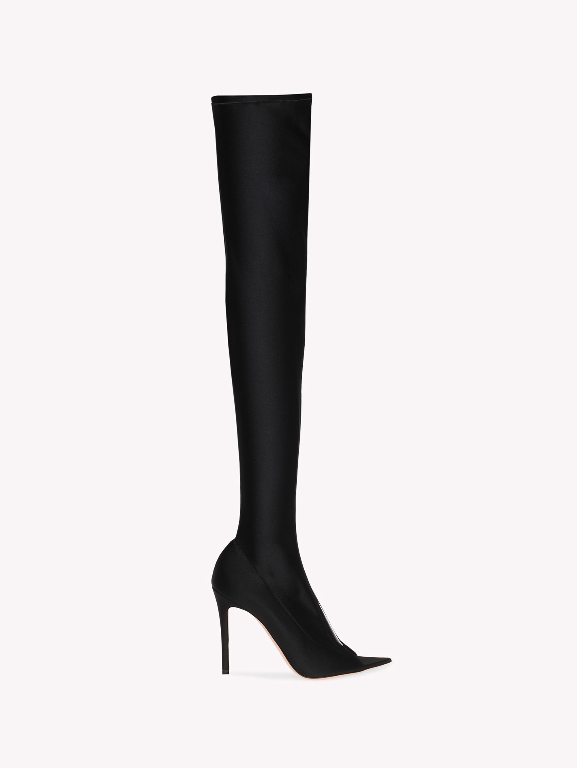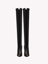 Aim high with our Hiroko cuissard thigh-high boots with peep-toe. Handmade from the finest blend of fabrics and see-through materials, these skin revealing boots are fun and frivolous. Made in Italy. - Composition: 90% FABRIC + 10% TPU - Heel height: 105 - Model Code: G50617.15RIC Item ID: G50617.15RIC.LYGNETR