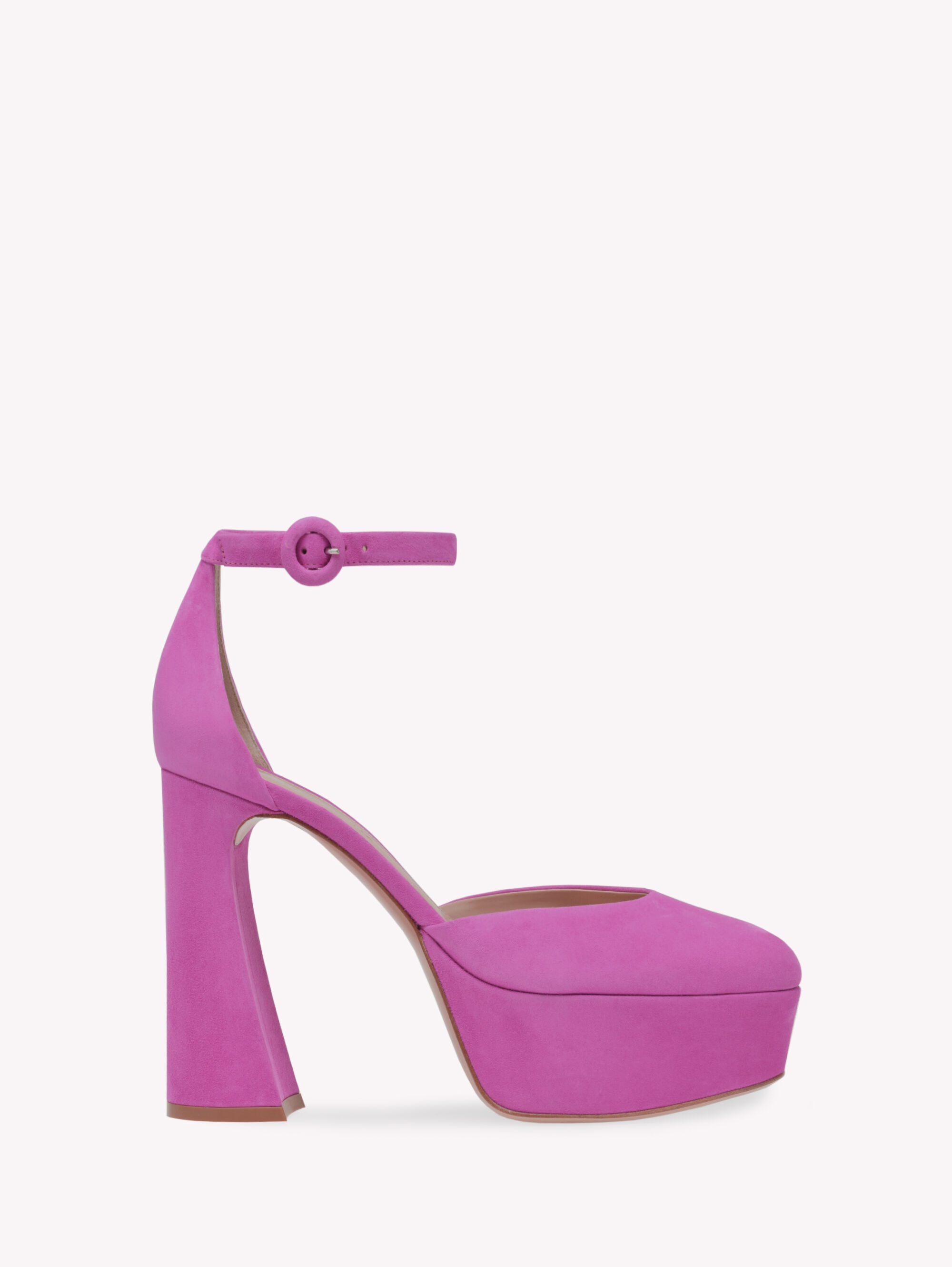 Holly D'Orsay is a rounded-toe style set on a 120mm sculptural heel and 40mm platform sole in matching leather. The 10mm wide ankle strap is embellished with a rounded buckle covered in suede. Handmade in Italy. - Composition: 100% SUEDE - Heel height: 70 - Model Code: G40389.70RIC Item ID: G40389.70RIC.CAMBLOO