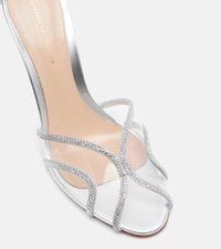 Crafted from materials of the highest quality, Gianvito Rossi’s designs are handmade using both traditional craftsmanship and innovative techniques. The Isabel 95mm stiletto sandals are made from PVC and crystal-embellished suede. Product Details - Upper: leather (suede), polyurethane - Lining: leather - Sole: leather insole and sole - Toe shape: almond open toe - Made in Italy - Includes: shoe box, dust bag - Designer color name: Silver+Trasp+Silver - Item color: silver - Hardware color: silver - Closure: buckle-fastening ankle strap - Item number: P01096391 Size & Fit - True to size - European sizes - 9,5cm-3.5" heel (size EU 38)