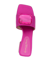 50mm Jaipur sandals These Jaipur mules are characterised by a striking custom-made gemstone designed by Gianvito Rossi himself. Handcrafted in Italy from lustrous fuchsia pink satin and leather, the pair stand on a mid-block heel for enhanced support and comfort. Highlights - Fuchsia pink - Satin finish - Slip-on style - Gemstone detailing - Open toe - Square toe - Branded insole - Mid block heel Made in Italy Composition Lining: Calf Leather 100% Sole: Calf Leather 100% Outer: Fabric 100% SIZE & FIT Measurement HEEL 1.96 in(5 cm)