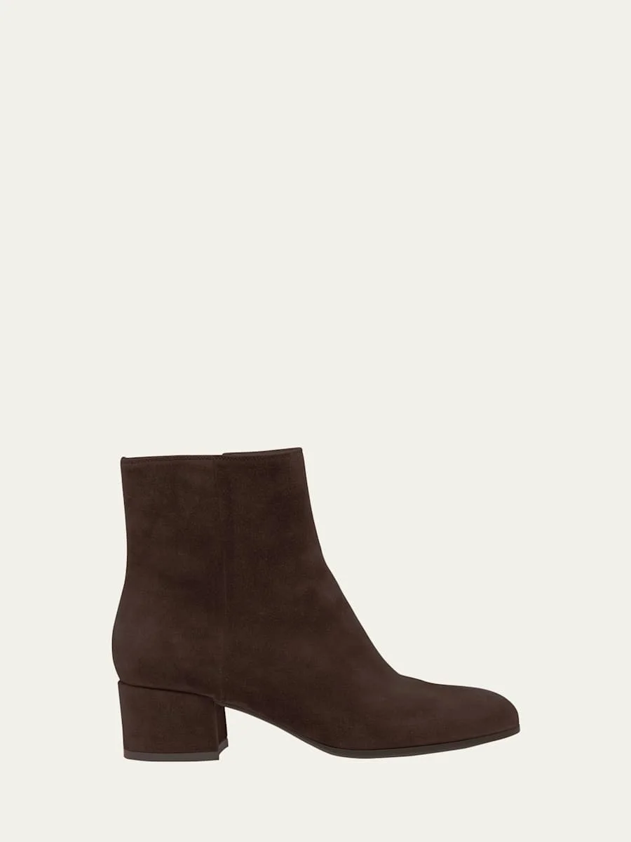 Gianvito Rossi soft calf suede ankle booties 1.75 in / 45 mm block heel Round toe Zip closure for easy on/off Leather outsole Lining: Leather Spot clean Made in Italy