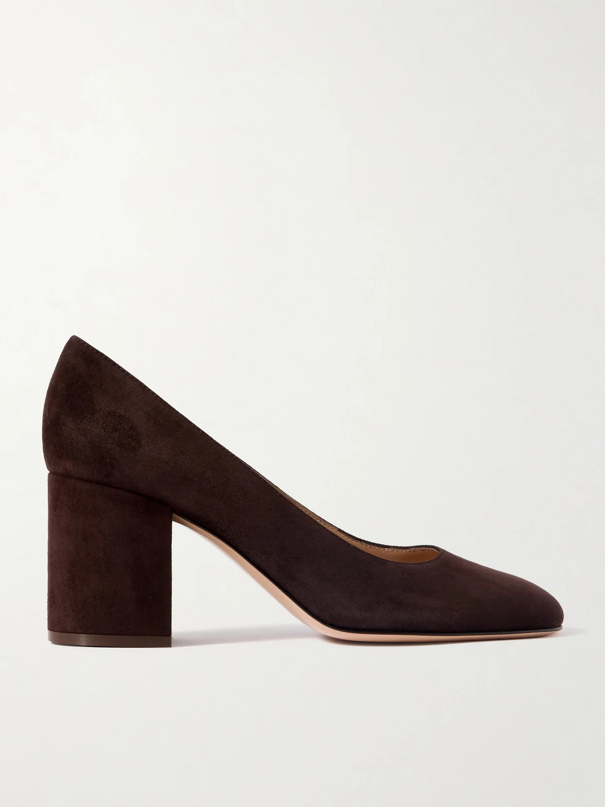 The beauty of Gianvito Rossi's pumps are that they'll go with just about anything thanks to their minimal design. They've been crafted in Italy from soft suede, have rounded toes and rest on 70mm block heels.