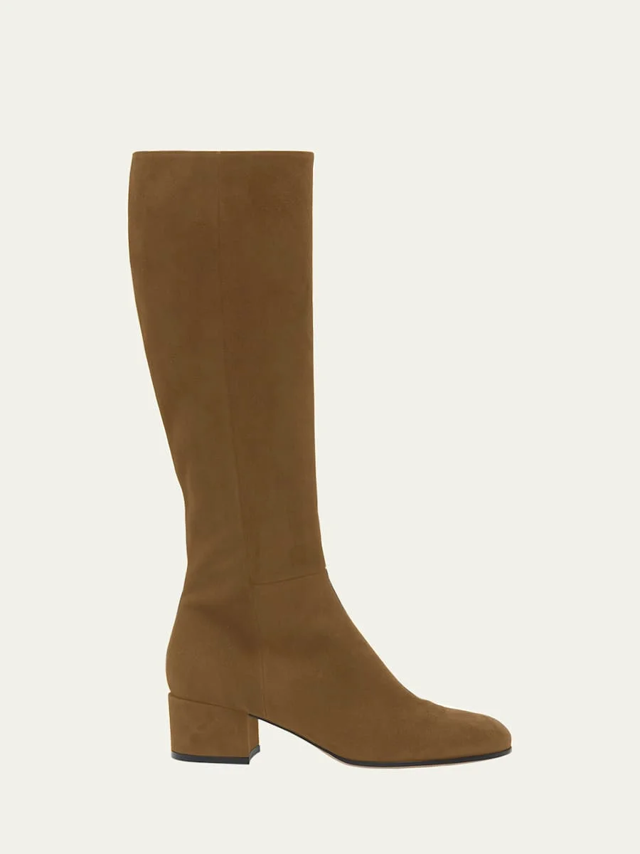 Gianvito Rossi soft suede knee boots 1.75 in / 45 mm block heel Round toe Side zip eases dress Lining: Leather Leather outsole Spot clean Made in Italy