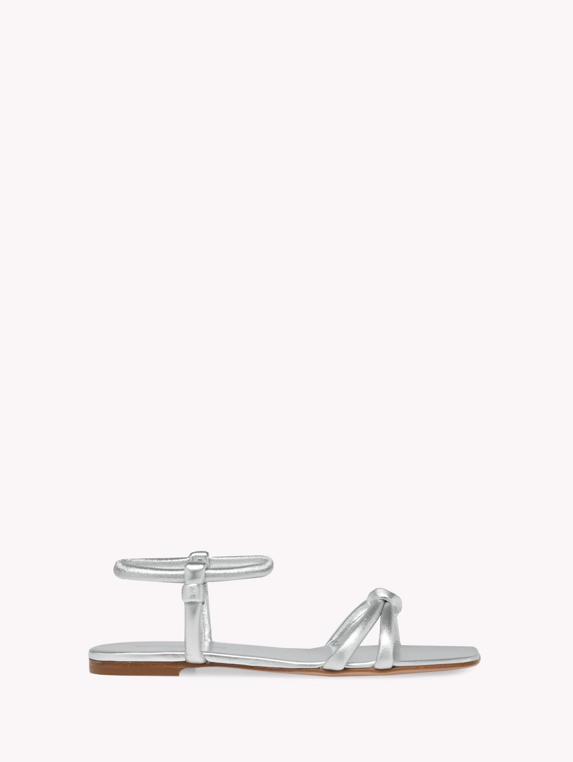 Juno 05 is a squared-toe sandal with a 5mm leather stack heel. Crafted from metallic-effect leather, this style features soft tubular upper straps with knotted details. The round tubular elastic ankle strap covered in leather ensures easy wearability. Handmade in Italy. Please refer to our Holidays Terms & Conditions page to check the costs and time frames for deliveries and returns in each country. If you wish to return a product, you can return it for free within 30 days of the reception of your order. Please return the items in the same condition in which they were received, including dustbag, box and protective stickers. Incomplete, damaged, worn or altered items cannot be accepted as stated in our Terms and Conditions . Standard shipping FREE (3-5 business days) Express shipping $60 (1-3 business days) Deliveries are made from Monday to Friday between 9:00 a.m. and 6:00 p.m. The time frame for delivery is calculated from the time your order is dispatched, not from the time your order was placed. Please check our Shipping page for further information. - Composition: 100% NAPPA - Heel height: 0.2 inches / 5 mm - Model Code: G32324.05CUO Item ID: G32324.05CUO.NPSARGE