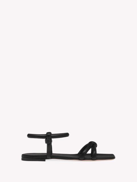 Crafted from soft leather, Juno 05 is a squared-toe flat sandal. The upper, detailed with padded tubular straps and a front knot, is finished with a leather-covered round elastic ankle strap for an easy wearability. Handmade in Italy. - Composition: 100% NAPPA - Heel Height: 0.2 inches / 5 mm - Model Code: G32324.05CUO Item ID: G32324.05CUO.NAPNERO