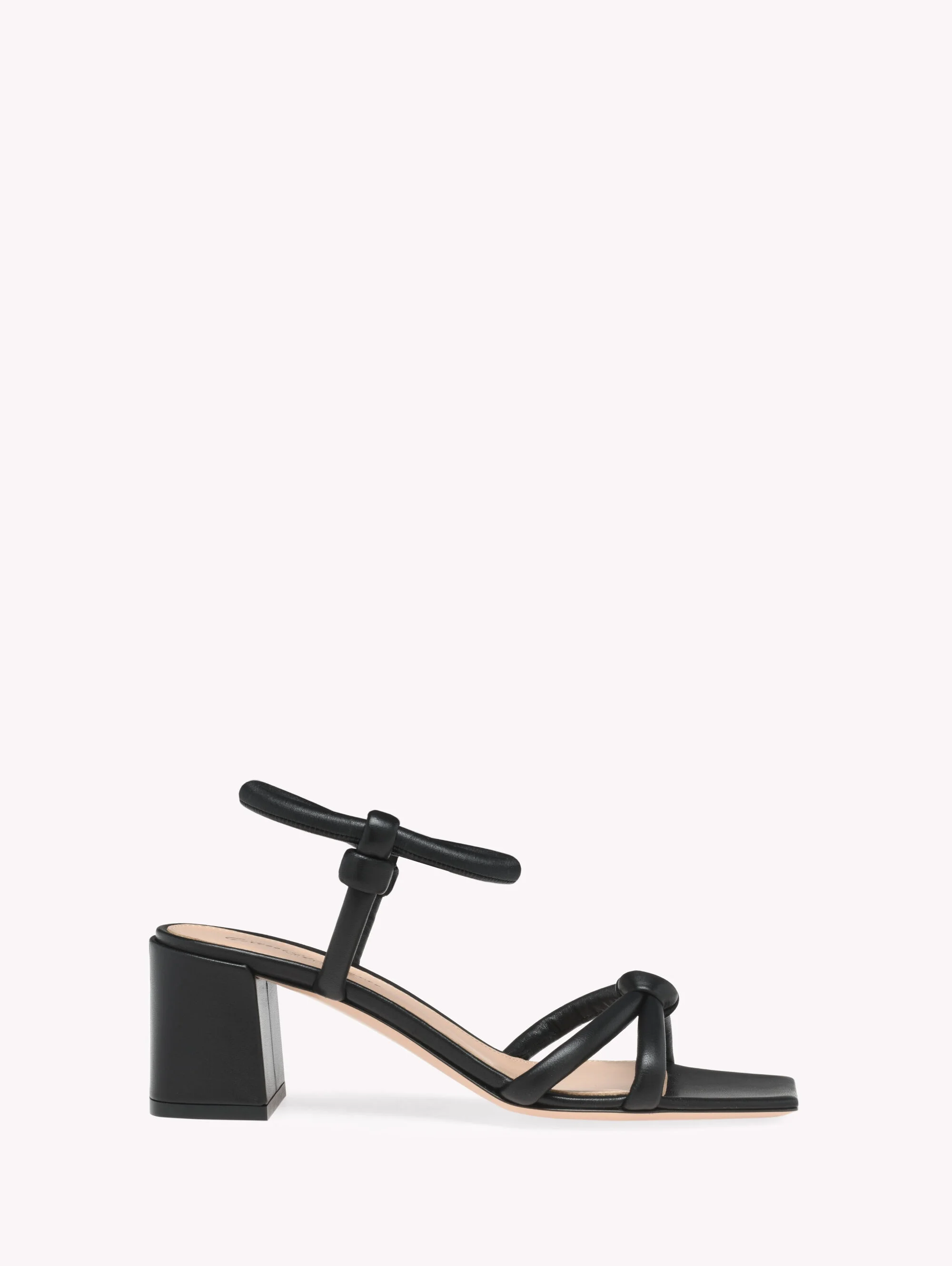 Juno 55 is a squared-toe sandal with a 55mm block heel. Crafted from leather, this style features soft tubular upper straps with knotted details. The round tubular elastic ankle strap covered in leather ensures easy wearability. Handmade in Italy. If you wish to return a product, you can return it for free within 30 days of the reception of your order. Please return the items in the same condition in which they were received, including dustbag, box and protective stickers. Incomplete, damaged, worn or altered items cannot be accepted as stated in our Terms and Conditions . Standard shipping FREE (3-5 business days) Express shipping $60 (1-3 business days) Deliveries are made from Monday to Friday between 9:00 a.m. and 6:00 p.m. The time frame for delivery is calculated from the time your order is dispatched, not from the time your order was placed. Please check our Shipping page for further information. - Composition: 100% NAPPA - Heel height: 2.2 inches / 55 mm - Model Code: G32445.55RIC Item ID: G32445.55RIC.NAPNERO