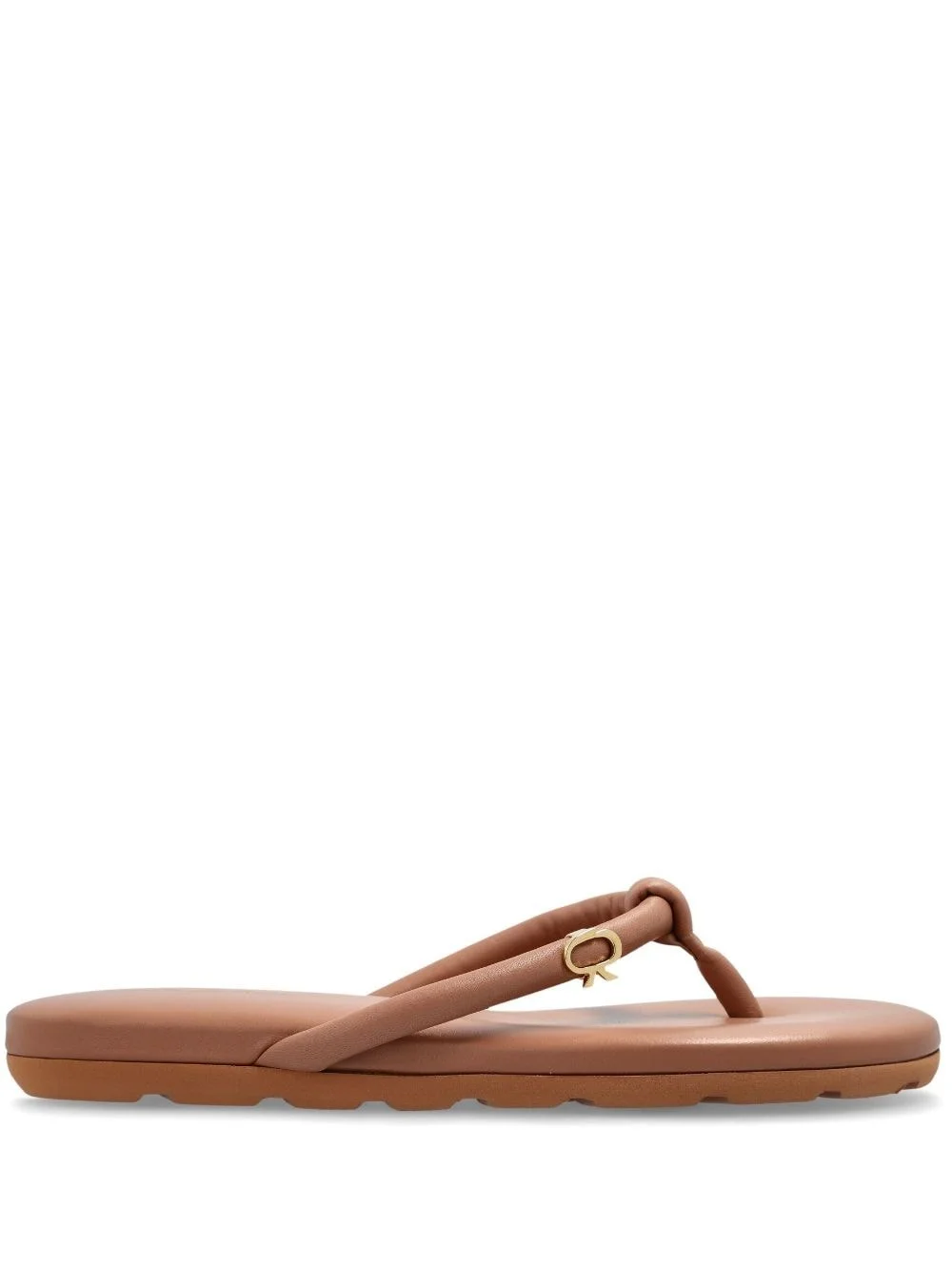 Juno flip-flop sandals Highlights - Beige - Calf leather - Slip-on style - Thong strap - Gold-tone logo plaque - Round open toe - Branded leather insole - Rubber sole Made in Italy Composition Leather 100%