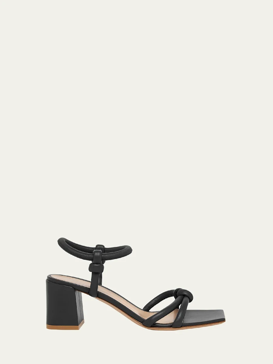 Knotted Leather Block-Heel Sandals