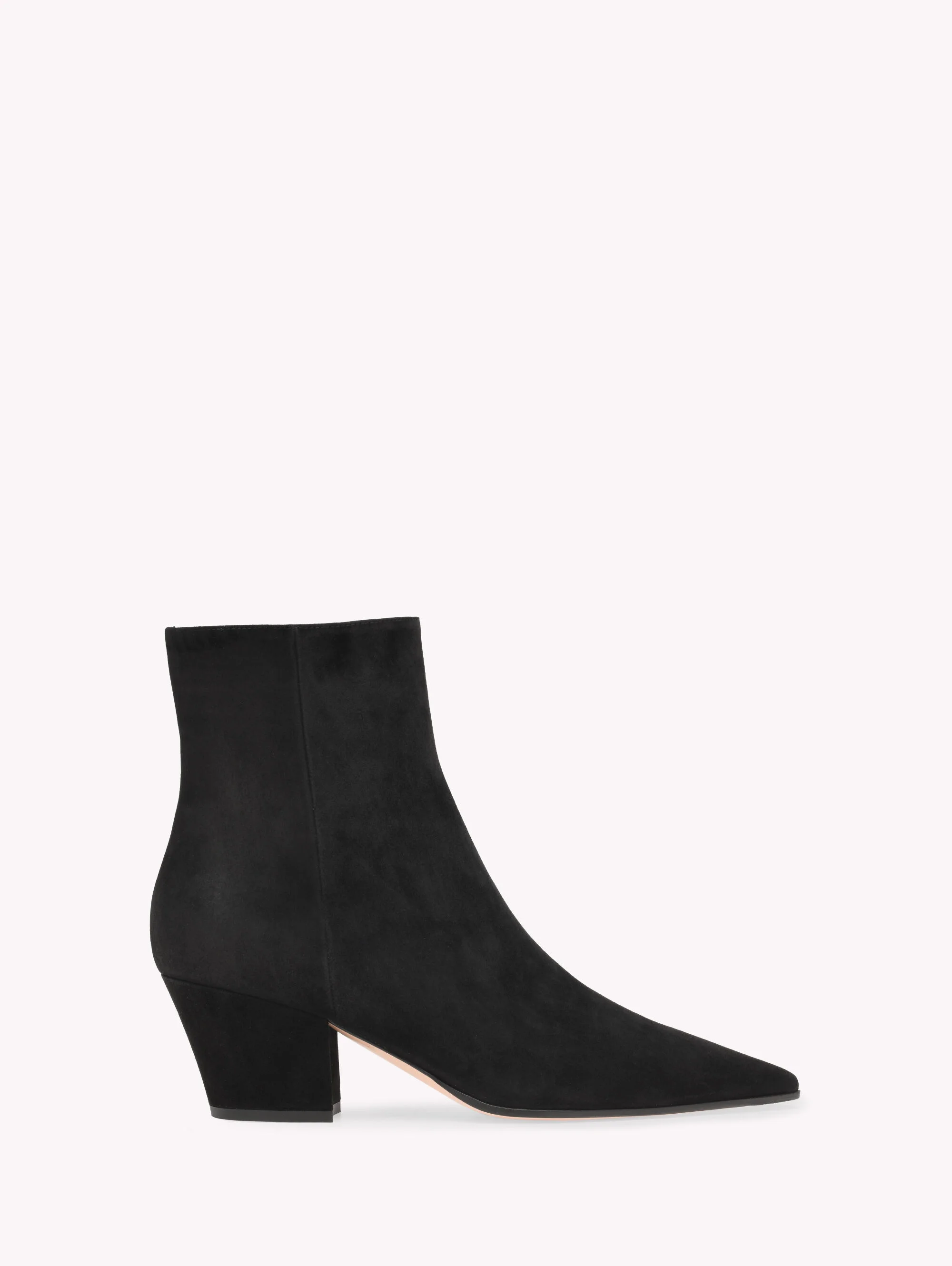 Crafted from supple suede, Keinna Bootie 55 is a fitted style with a pointed toe and a chunky Western 55mm heel. The inner tonal nylon zipper is completed with a metallic puller engraved with the logo of the Maison. Handmade in Italy. - Composition: 100% SUEDE - Heel height: 2.2 inches / 55 mm - Model Code: G72937.55RIC Item ID: G72937.55RIC.CASNERO