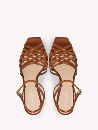Crafted from precious satin, Kerry is a square open-toe sandal with a 95mm geometric stiletto heel. The multistrap upper presents a woven criss-cross motif. The ankle strap is embellished with the signature Ribbon buckle. Handmade in Italy. - Composition: 100% FABRIC - Heel Height: 3.8 inches / 95 mm - Model Code: G32629.95RIC Item ID: G32629.95RIC.CRESEDO