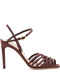 95mm Kerry sandals Highlights - Burgundy - Satin fabric - Stiletto heel - Ankle strap - Buckle fastening - Woven straps Made in Italy Composition Sole: Leather 100% Outer: Fabric 100% Lining: Fabric 100% SIZE & FIT Measurement HEEL 3.74 in(9.5 cm)