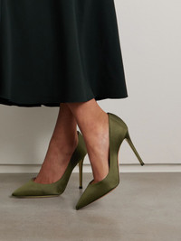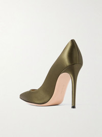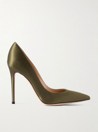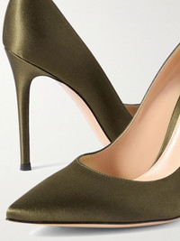 You know a shoe is iconic when it goes by one name, and Gianvito Rossi's 'Gianvito' pumps are a timeless example. Made in Italy from satin, they have pointed toes, lightly cushioned insoles and sleek 105mm stiletto heels. Wear them with everything from dresses to tailoring. Large to size. See Size & Fit notes. Size & Fit - Fits large to size, take a half size smaller than normal - Narrow at the toe - Italian sizing Details & Care - Heel measures approximately 105mm/ 4 inches - Army-green satin - Slip on
