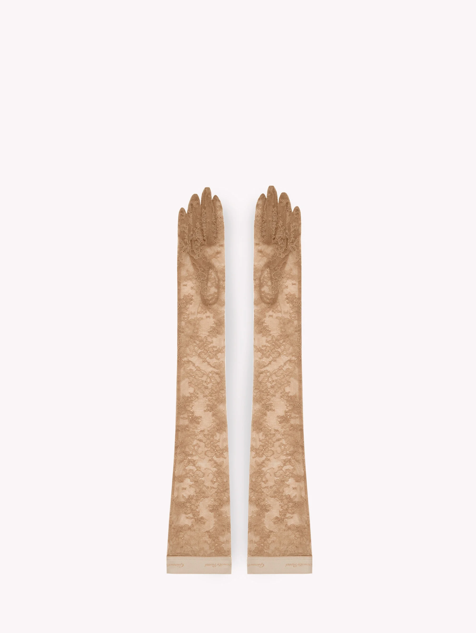 Nothing says retro elegance like a pair of long gloves. Made of delicate Praline beige lace and finished with a logo-woven cuff, this exquisite and sophisticated accessory will elevate any evening outfit. - Composition: 100% FABRIC - Model Code: K00752.00WOM Item ID: K00752.00WOM.PLTPRAL