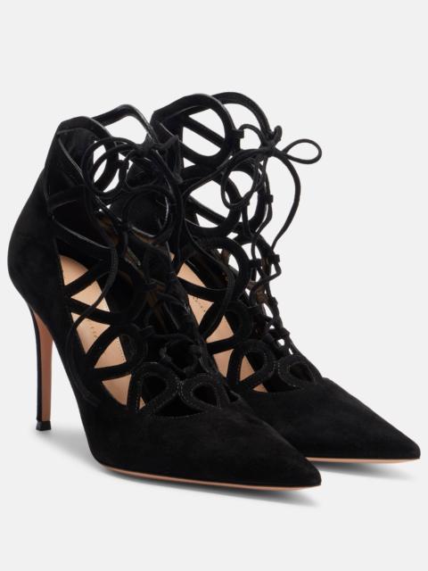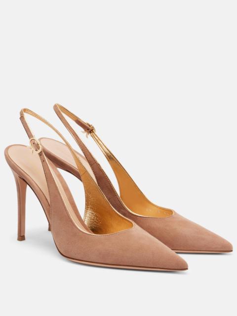Crafted from materials of the highest quality, Gianvito Rossi’s designs are handmade using both traditional craftsmanship and innovative techniques. These suede slingback pumps feature 95mm stiletto heels and self-tie laces that wind elegantly around the ankle. Product Details - Upper: leather (suede) - Lining: leather - Sole: leather insole and sole - Toe shape: pointed toe - Made in Italy - Includes: shoe box - Designer color name: Black - Item color: black - Slingback strap - Item number: P01096334 Size & Fit - True to size - Slightly narrow at the toe - European sizes - 9,5cm-3.5" heel (size EU 38)