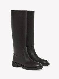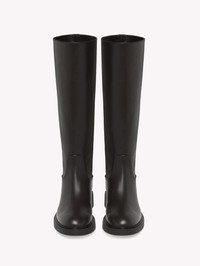 Crafted from leather, Ascott is a round toe pull-on knee boot. The tonal rubber sole measures 13mm at the front and 33mm at the heel height. Handmade in Italy. - Composition: 100% CALF - Heel Height: 0.8 inches / 20 mm - Model Code: G80128.20GOM Item ID: G80128.20GOM.CLNMOKA
