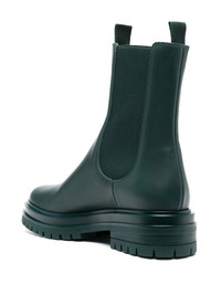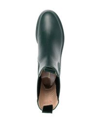 leather pull-on ankle boots dark green calf leather blend elasticated side panels double pull-tab at the opening almond toe branded insole chunky rubber sole low block heel pull-on style Made in Italy Composition Leather 100% SIZE & FIT Measurement CIRCUMFERENCE 7.87 in(20 cm) HEEL 1.96 in(5 cm) HEIGHT 6.69 in(17 cm) Sole height 1.18 in(3 cm)